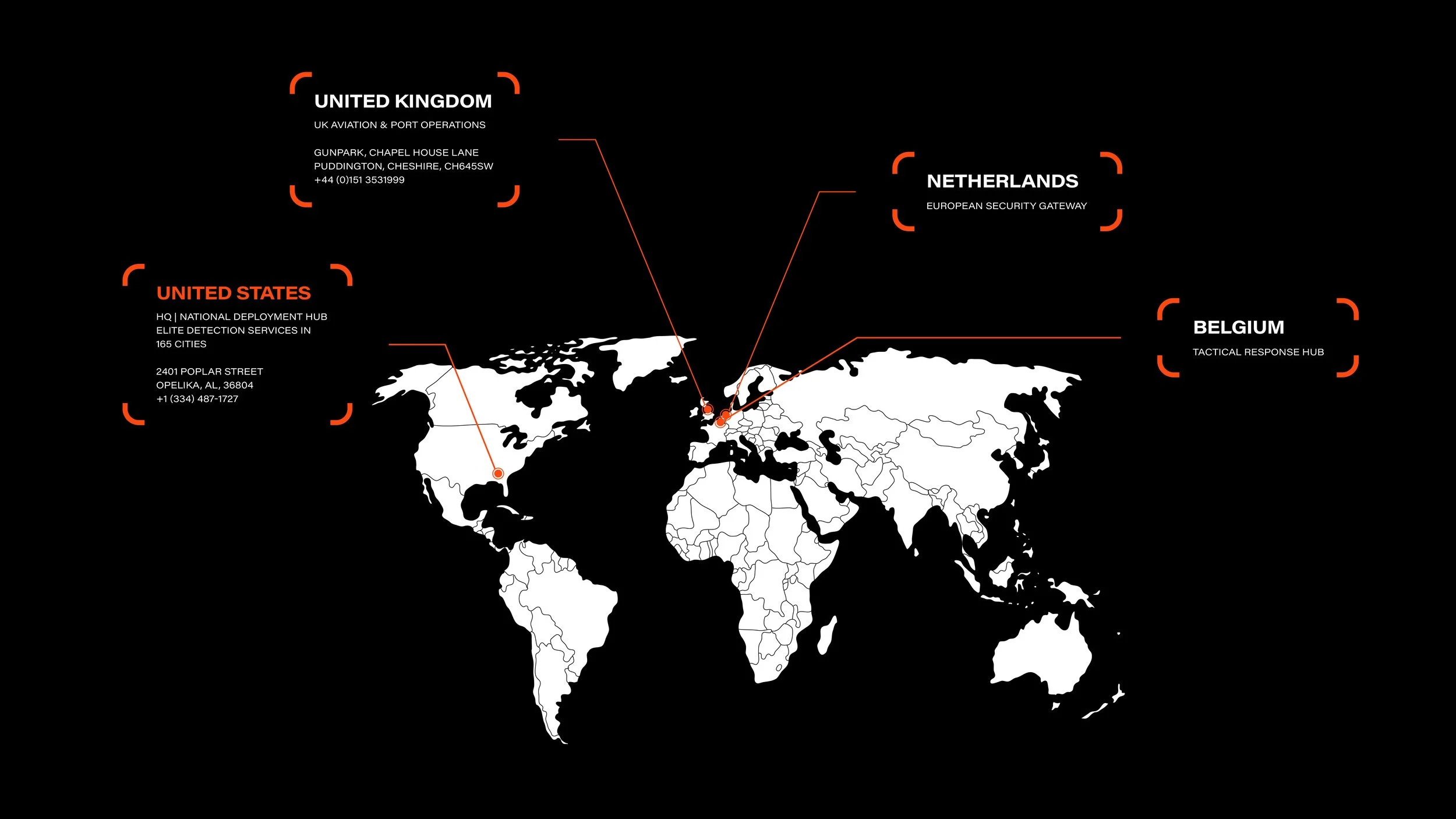GK9 maintains a network of operational hubs across the United States and Europe, positioned to support fast, compliant deployments where security needs escalate. Our teams are embedded in key aviation, cargo, and infrastructure corridors, ready to deploy with precision and professionalism. Every location reflects the same standard: real-world preparedness, without compromise.